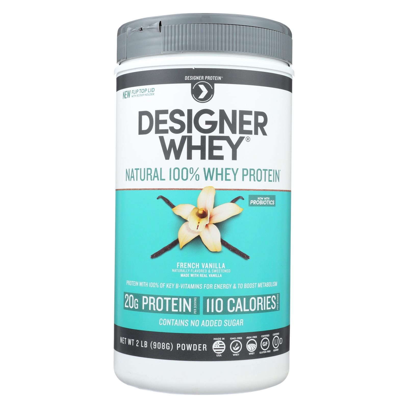 Made with natural 100% premium whey and naturally flavored and sweetened for only 100 good-for-you calories per serving, designer whey protein powder in french vanilla is irresistibly delicious. No wonder it's our most popular flavor. It's also specially formulated to help you get more out of your workouts. The secret is the ingenious combination of l-glutamine to keep muscles fueled, b-vitamins, and full-spectrum whey peptides to help muscles recover. Now, you can get ready for tomorrow and savor every moment along the way.-great taste - smooth and delicious. Chefsbest excellence award - awareded to brands that surpass quality standards estabilished by independent professional chefs.-18g of protein - 36% of your daily protein per serving - the right amount for your active lifestyle, yet easy on your digestive system.-100% premium natural whey protein - our whey is pure so your body quickly absorbs it for maximum post-workout recovery and nutrition. A complete protein with the right balance of amino acids that help your immune system.-100 good for you calories per serving.-3g prebiotic fiber - good source of fiber for digestive health.-essential vitamins and minerals - excellent source of calcium, vitamin d and b-vitamins.