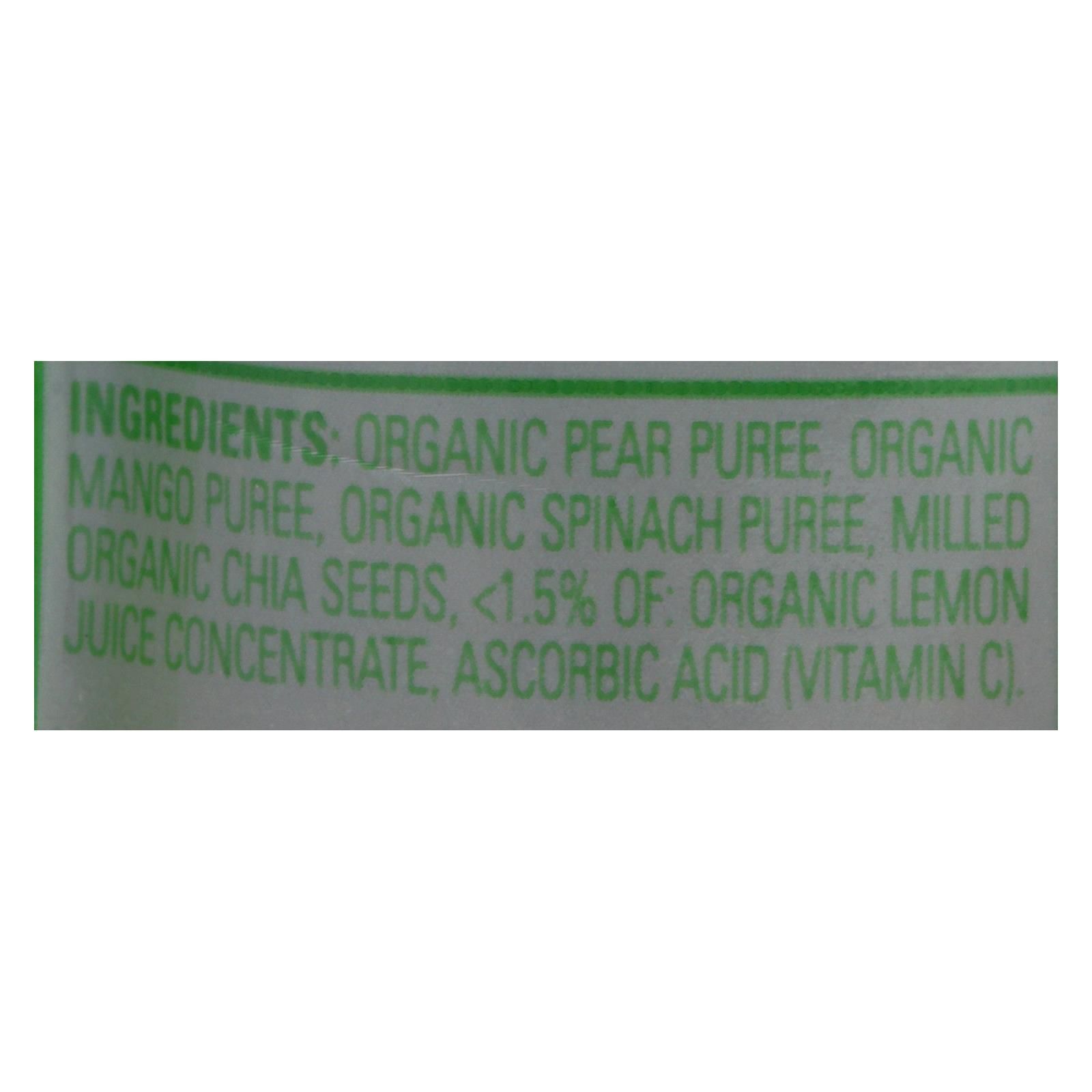 ingredients : organic pear puree;organic mango puree;organic spinach puree;milled organic chia seeds;<1.5% of: organic lemon juice concentrate;ascorbic acid;vitamin c