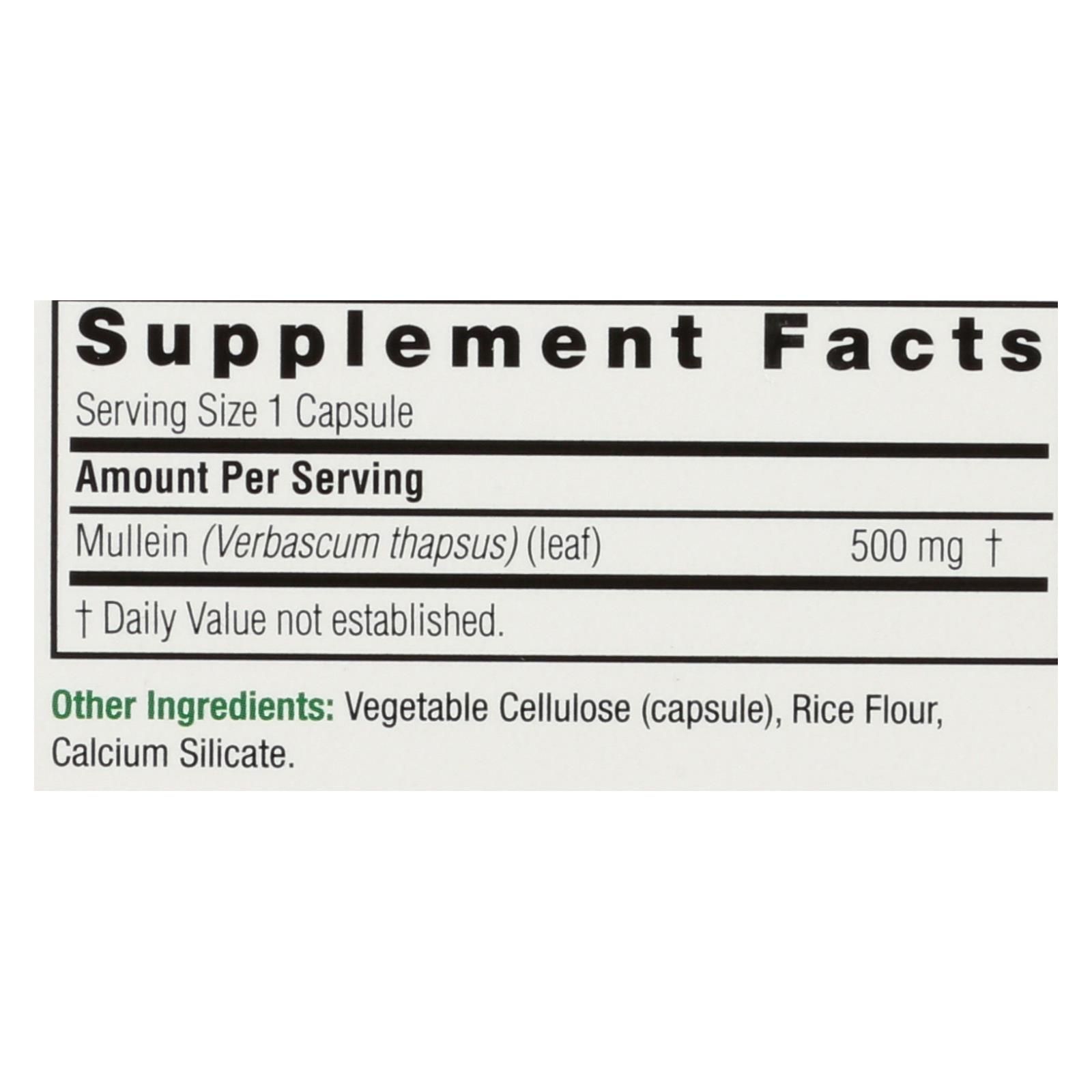Nature's answer mullein leaf dietary supplement supports the health of your respiratory system with 500 mg. Of mullein per single dose. We make our supplement in our u.s.-based cgmp-certified facility using ethical manufacturing processes and under strict quality standards. Our 90 count bottle of mullein leaf supplement goes through 100 quality control checkpoints to ensure the best product reaches your hands.