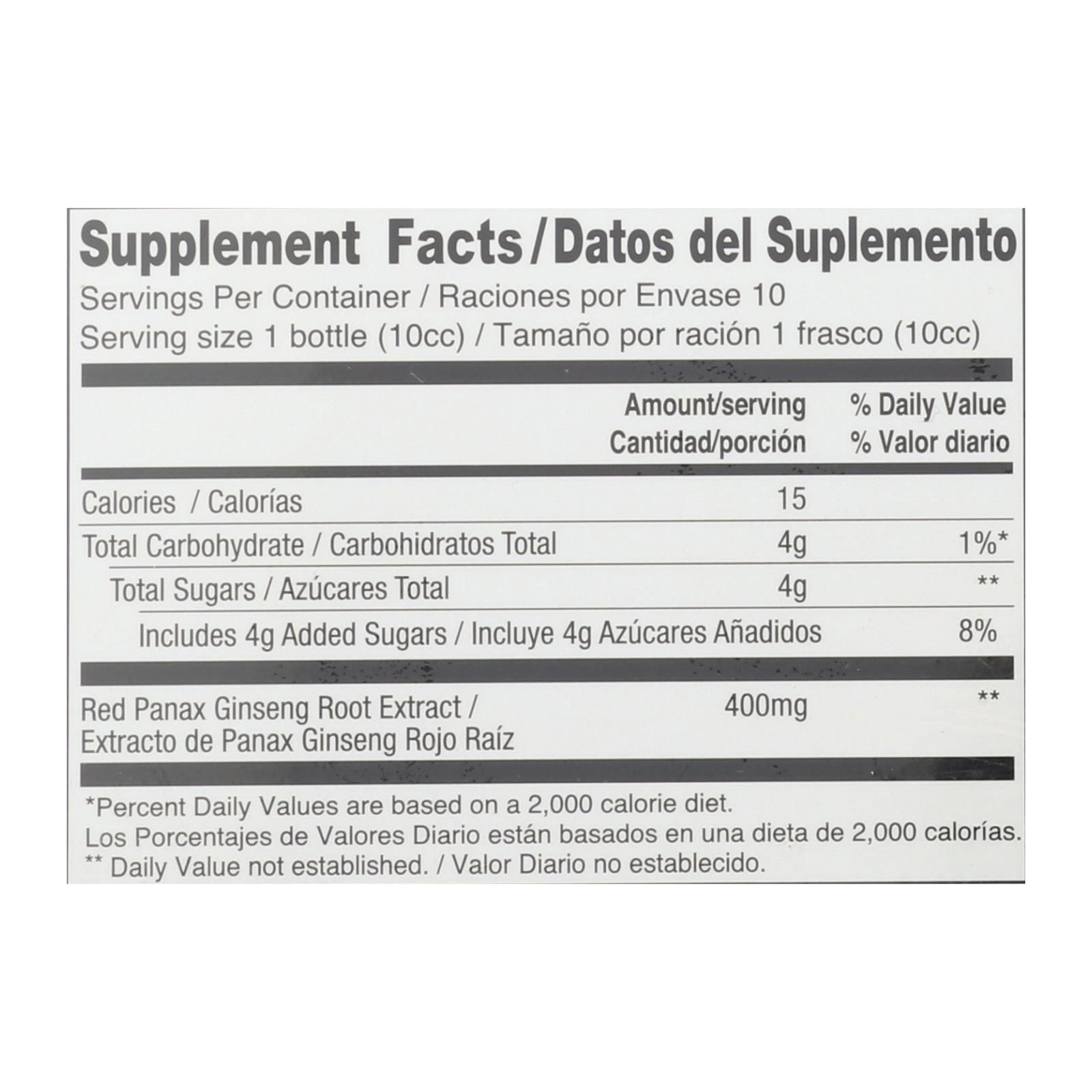 Prince of peace ultra strength red panax ginseng extractum can help boost your system with powerful herbal nutrition. We create this liquid supplement from purified water and genuine red panax ginseng, keeping it at low temperatures to preserve its vital nutrients. Each bottle contains a daily dose of 400 mg. Of red panax extract, packaged in a bottle with a sipper cap for easy measurement and convenient dosage. This box contains 10 bottles of 0.34 fl. Oz. Each for a net volume of 3.4 fl. Oz.