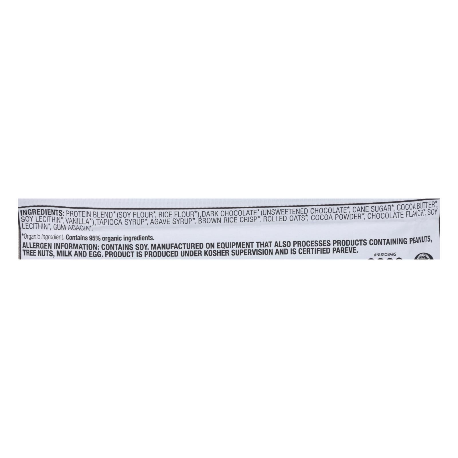 Nugo organic protein bar, double dark chocolate is nutrition to-go. This product is uniquely coated in luscious organic cacao dark chocolate and every pure ingredient meets usda organic standards. Nugo organic protein bar, double dark chocolate contains 10 g. Vegan protein and contains 1.76 oz. Of product.