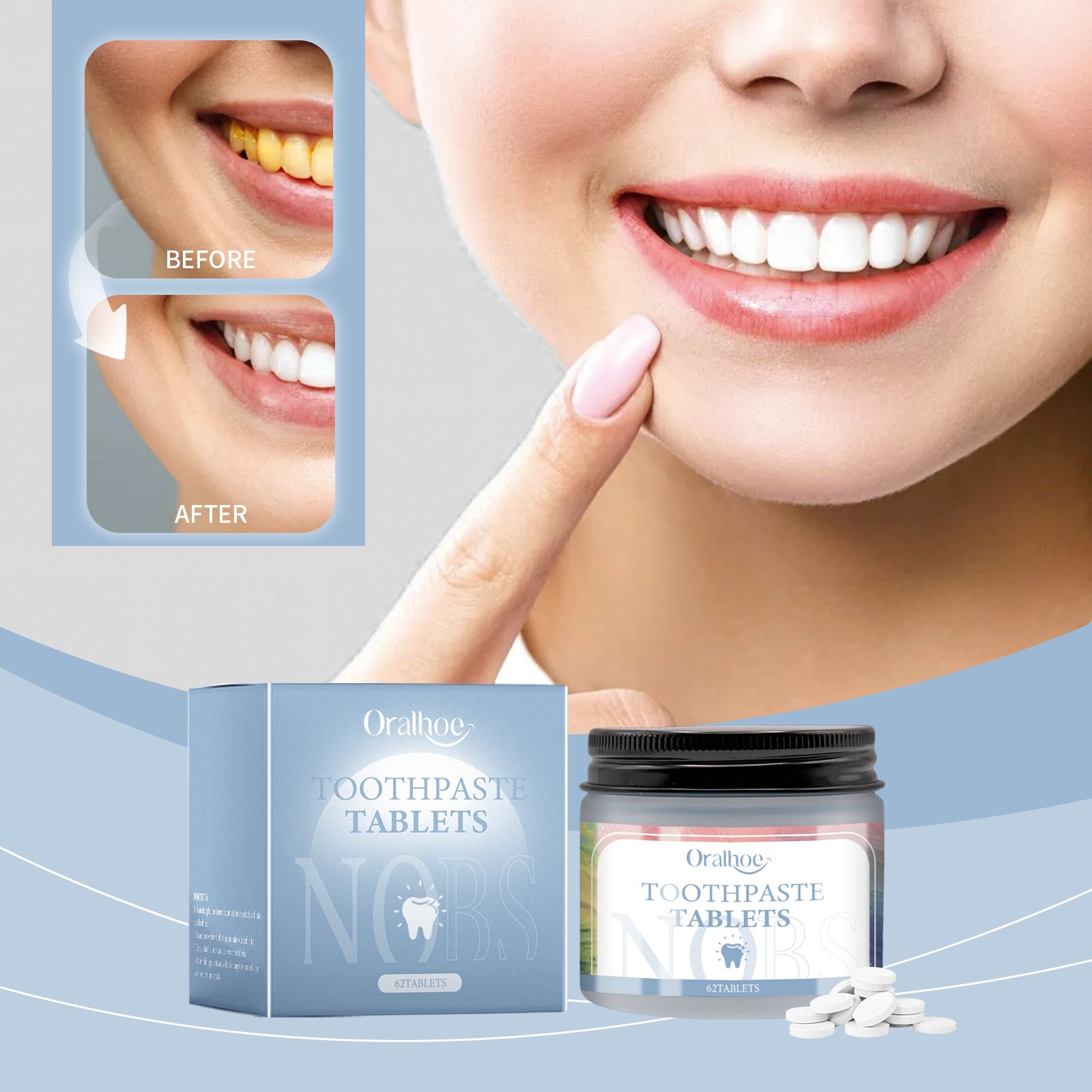 Our toothpaste tablets contain baking soda and sea salt. It whitens teeth and significantly enhances tooth shine. Its use is simple: take a piece of the product in your mouth, chew it until it is completely dissolved, and follow the normal steps of brushing your teeth. And can effectively remove yellow stains and stains on the surface of the teeth.