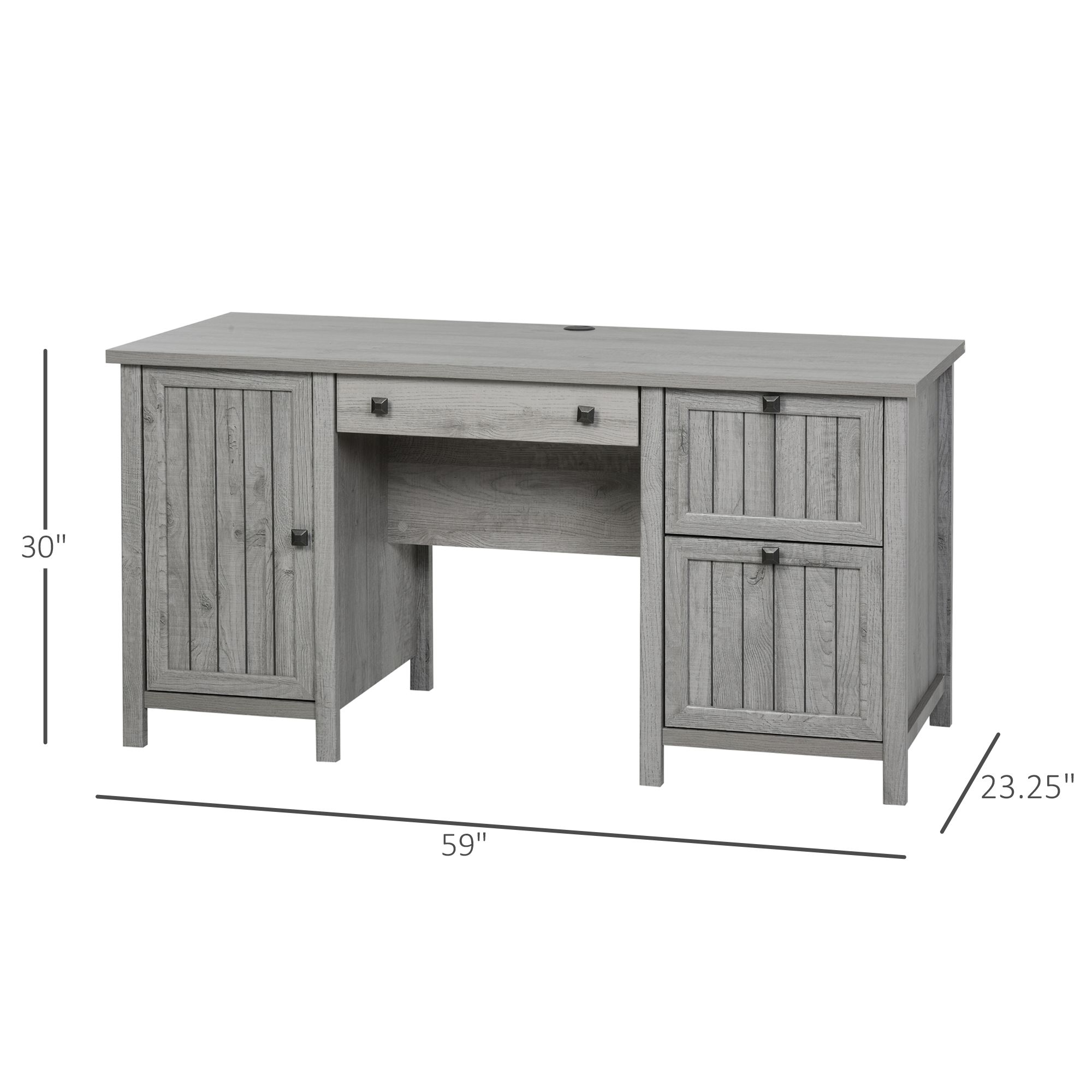 HOMCOM Vintage Executive Computer Desk with Cabinet 3 Drawers for Files Home Office Workstation Grey