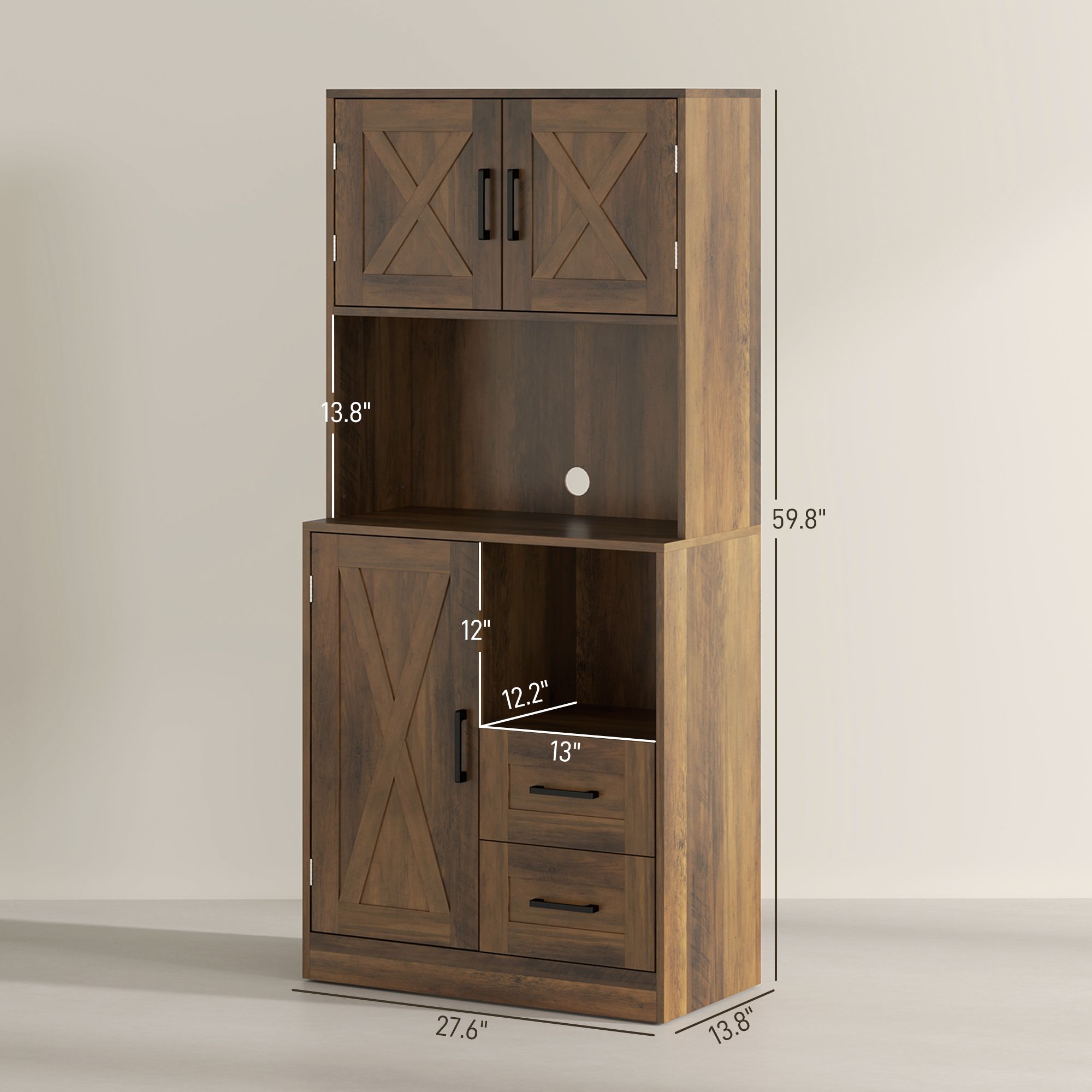 Unleash a touch of farmhouse charm in your kitchen with the HOMCOM pantry cabinet. This hutch cabinet with storage features a modern farmhouse design with retro wood panels and charming barn doors. Organize effortlessly with two spacious compartments, cupboards with adjustable shelves, and smooth-gliding drawers. Plus, keep your space neat with the handy cable management system! Great for any cozy kitchen nook.