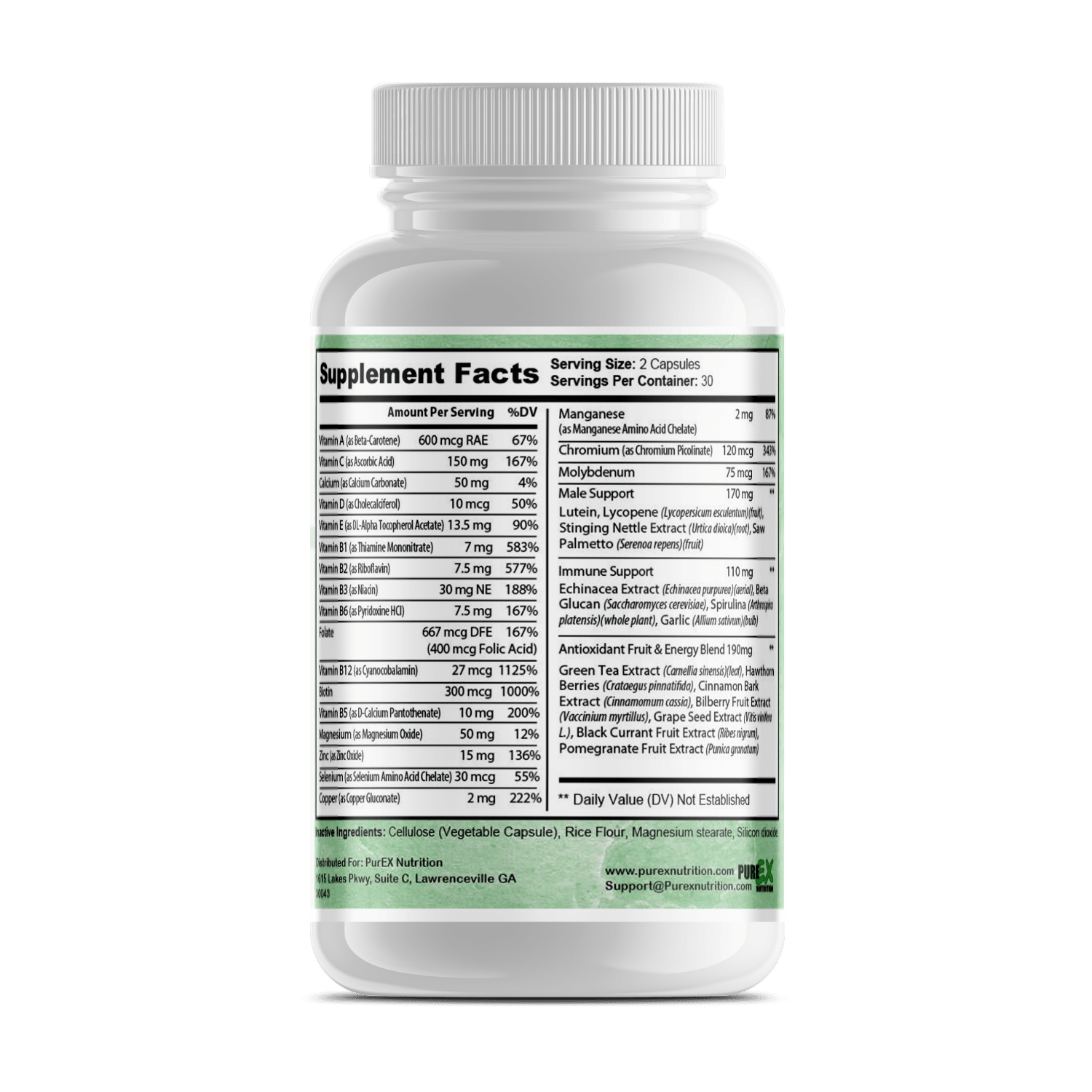 With overall health as a main focus for a multivitamin, we decided to add an ‘Immune Support’ complex. We added some ingredients to support your immune system. But we didn’t stop there, we went above and beyond. We added an antioxidant fruit blend to help break down free radicals. That helps fight disease caused by free radical damage. This also helps protect your skin as free radicals break down collagen causing wrinkling, dark spots, fine lines and loose, saggy skin.